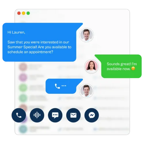 Creamos campañas automatizadas que hacen seguimiento por llamadas, mensajes de texto (SMS/MMS), correo electrónico, notas de voz e incluso Facebook Messenger.